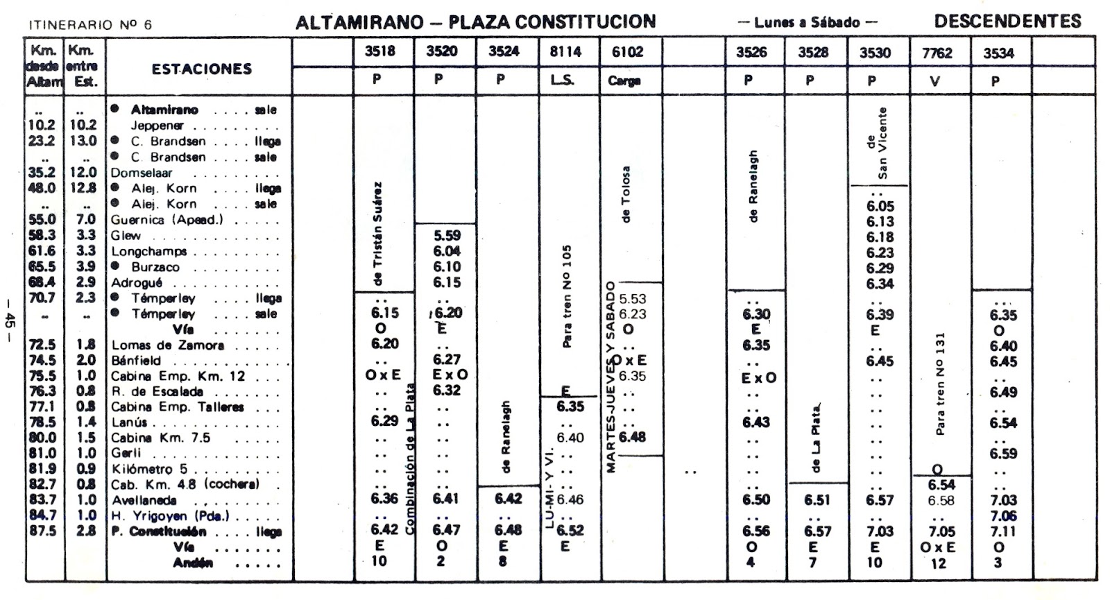 FUENTE: Itinerario de Servicios Nº 6 -Sección Suburbana- del Ferrocarril Roca. En vigencia desde el 20 de diciembre de 1976.